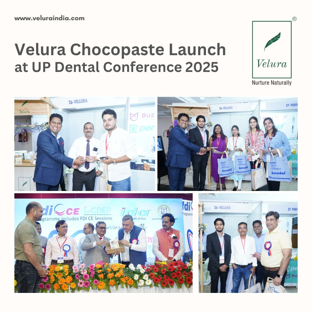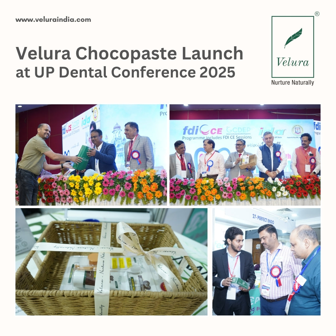 The Indian Dental Association organized the UP Dental Show 2025 on 23rd & 24th August at Indira Gandhi Pratishthan, Lucknow. Supported by the IDA Lucknow Branch, the two-day event featured keynote sessions, workshops, and panel discussions on the latest innovations in dentistry. With over 2500+ dental professionals in attendance, Velura CHOCOPASTE kids toothpaste was launched by IDA(Indian Dental Association) President and General secretory along with 12 National Dental dignitories.